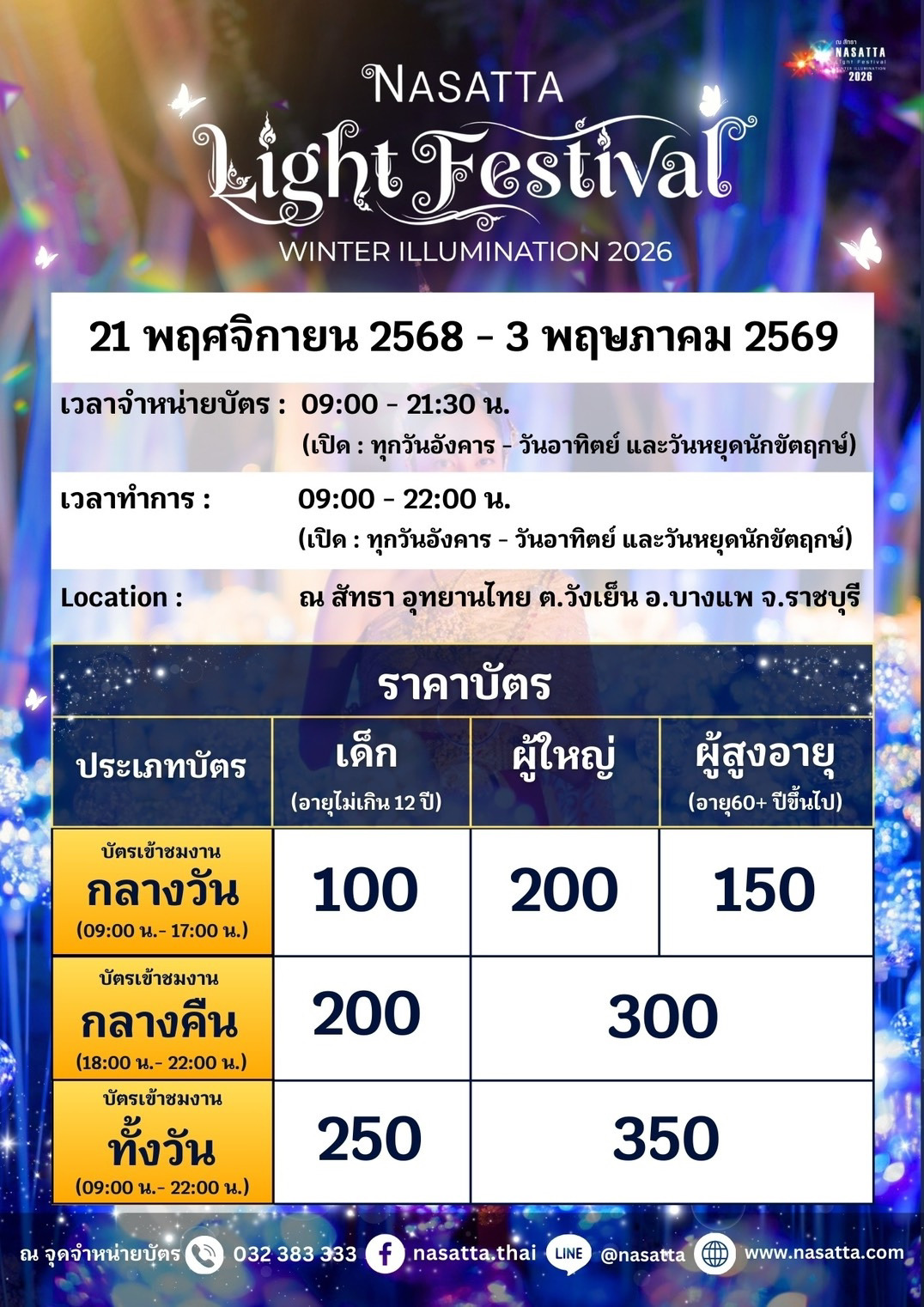 ราคาบัตรงานไฟ Nasatta Light Festival 2026